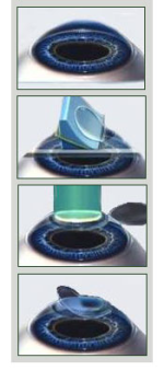 Lasek: Das Verfahren ist ähnlich, nur wird kein Vakuumring aufgesetzt und kein Schnitt der Hornhaut durchgeführt. Anstatt dessen wird die oberflächlichste Schicht der Hornhaut, das Epithel, mit einer verdünnten Alkohollösung aufgelockert und beiseite geschoben. Nach der Laserbehandlung wird diese Schicht wieder zurückgelegt und eine therapeutische Kontaktschale aufgesetzt.